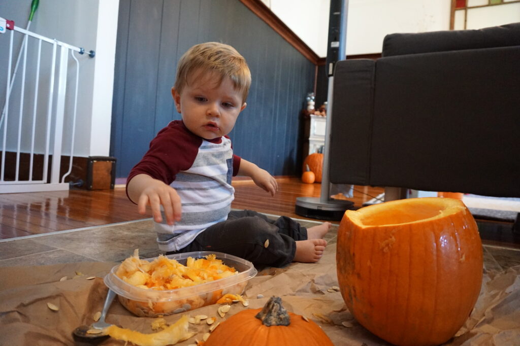 Real pumpkin exploration is messy but worth it. Cut open a small pumpkin and let your baby touch the insides. The slimy texture, the stringy pulp, and the surprising seeds offer a completely novel sensory experience. Put your baby in just a diaper, place the pumpkin in a shallow bin, and let them dig in. This is the kind of tactile play that develops their willingness to explore unfamiliar textures, which matters more than you might think for future feeding and sensory processing.